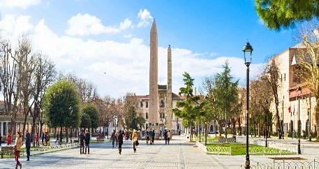 - Trường đua Hippodrome: đây là một đấu trường công cộng chủ yếu dành cho các cuộc đua xe ngựa hoành tráng, nơi tổ chức các trò chơi đấu sĩ, các nghi lễ chính thức, các buổi lễ kỷ niệm quan trọng của đất nước. Chiêm ngưỡng cột đá Theodosius khổng lồ. (Chụp ảnh bên ngoài)