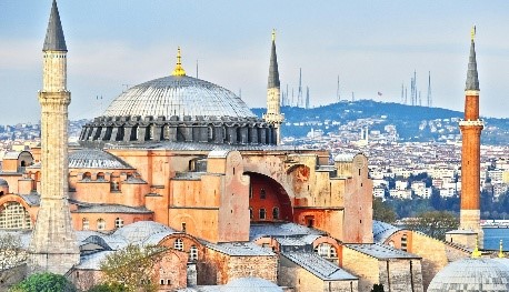 - Hagia Sophia: một công trình kiến trúc khổng lồ ở Istanbul, Thổ Nhĩ Kỳ, ban đầu là một Vương cung thánh đường Chính thống giáo Đông phương gần 1.500 năm trước, sau đó là thánh đường Hồi giáo và hiện tại trở thành viện bảo tàng. (Chụp hình bên ngoài)